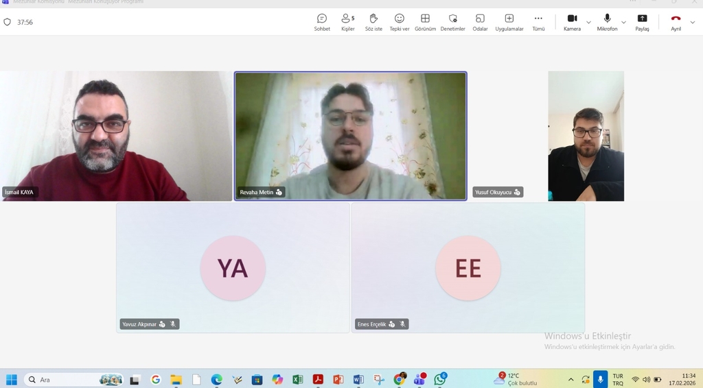 Fakültemiz Mezunlar Komisyonu tarafından “Mezunlar Konuşuyor” konsepti kapsamında düzenlenen çevrimiçi program, mezunlarımız ile öğrencilerimizi bir araya getirdi. Program 17 Şubat 2026'da saat 11:00'de Microsoft Teams uygulaması üzerinden çevrimiçi olarak düzenlendi. Programın moderatörlüğünü Fakültemiz Öğretim Görevlisi İsmail Kaya üstlendi.